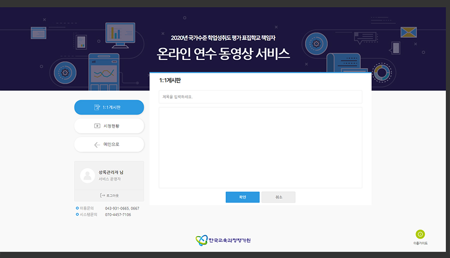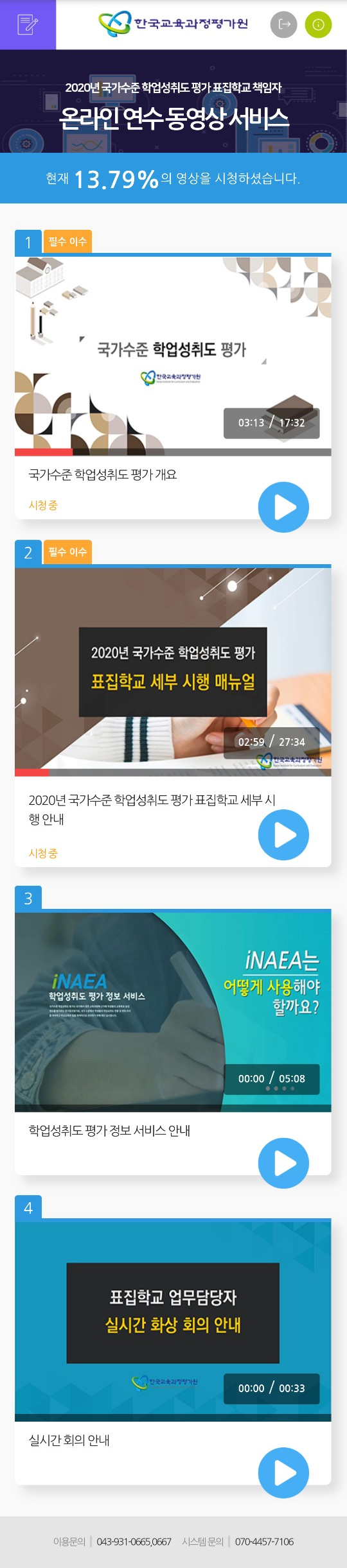 완료 | KICE 온라인 연수 동영상 서비스 페이지 정보 작성자 관리자 작성일20-08-19 20:49 조회3,122회 댓글0건 관련링크 http://data.srmm.kr/SRW_PRJ/kice2020/ 933회 연결 다음글 목록 본문 댓글목록 등록된 댓글이 없습니다. 다음글 목록
