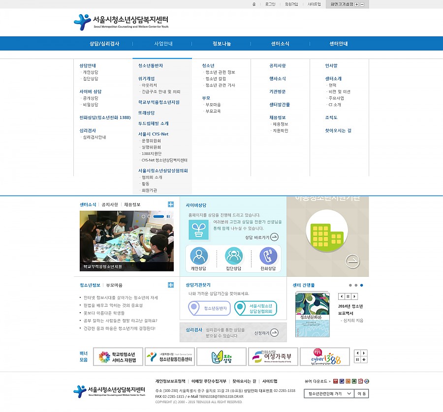 완료 | 서울시청소년상담복지센터 홈페이지 페이지 정보 작성자 실장 작성일15-03-04 11:04 조회8,925회 댓글0건 관련링크 http://www.teen1318.or.kr/ 2547회 연결 이전글 다음글 목록 본문 댓글목록 등록된 댓글이 없습니다. 이전글 다음글 목록