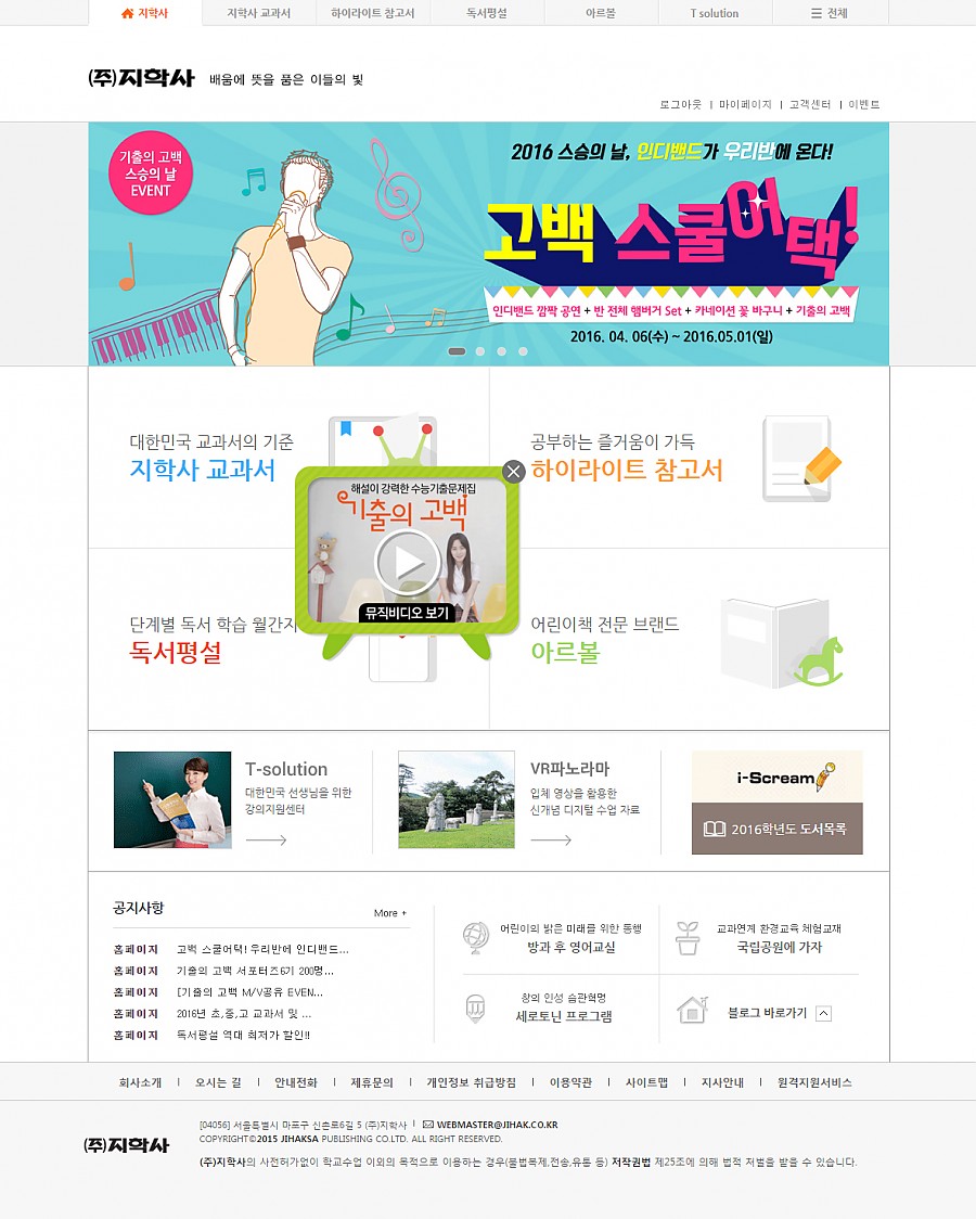 완료 | 지학사 홈페이지 전체 리뉴얼 페이지 정보 작성자 관리자 작성일15-03-04 11:46 조회11,361회 댓글0건 관련링크 http://www.jihak.co.kr/ 3088회 연결 이전글 다음글 목록 본문 -- 이하 디자인 시안 중 일부 - 댓글목록 등록된 댓글이 없습니다. 이전글 다음글 목록