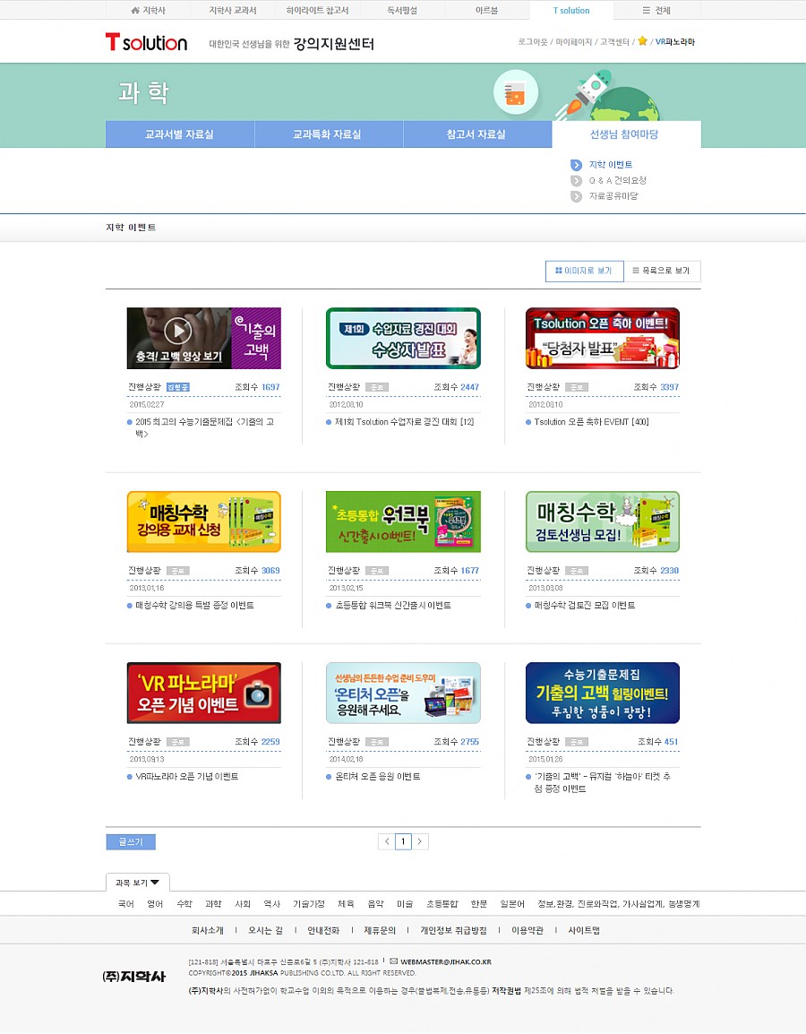 완료 | 2015년 T-solution 리뉴얼 페이지 정보 작성자 관리자 작성일16-04-15 16:46 조회7,560회 댓글0건 관련링크 http://t-sol.jihak.co.kr/ 2280회 연결 이전글 다음글 목록 본문 댓글목록 등록된 댓글이 없습니다. 이전글 다음글 목록